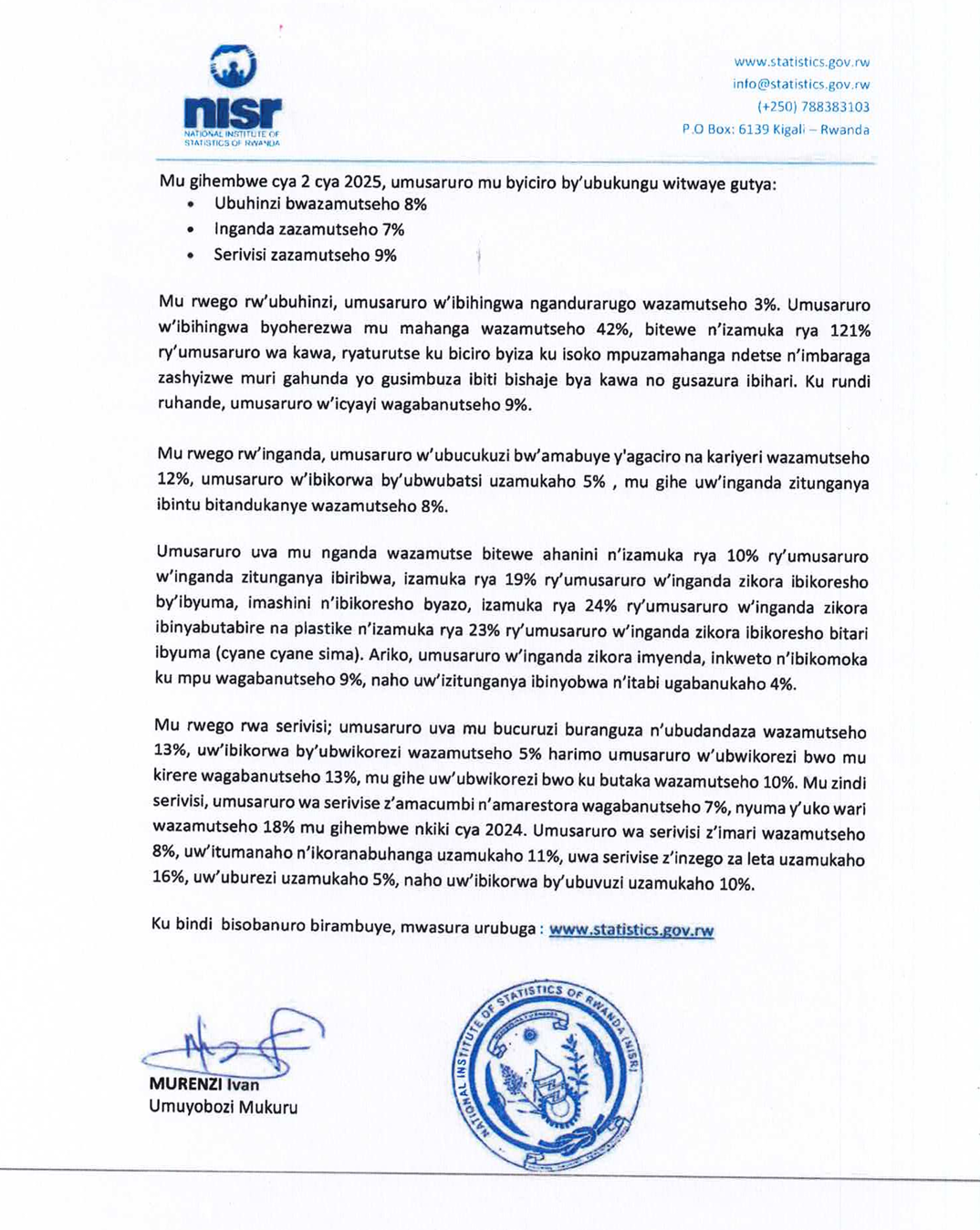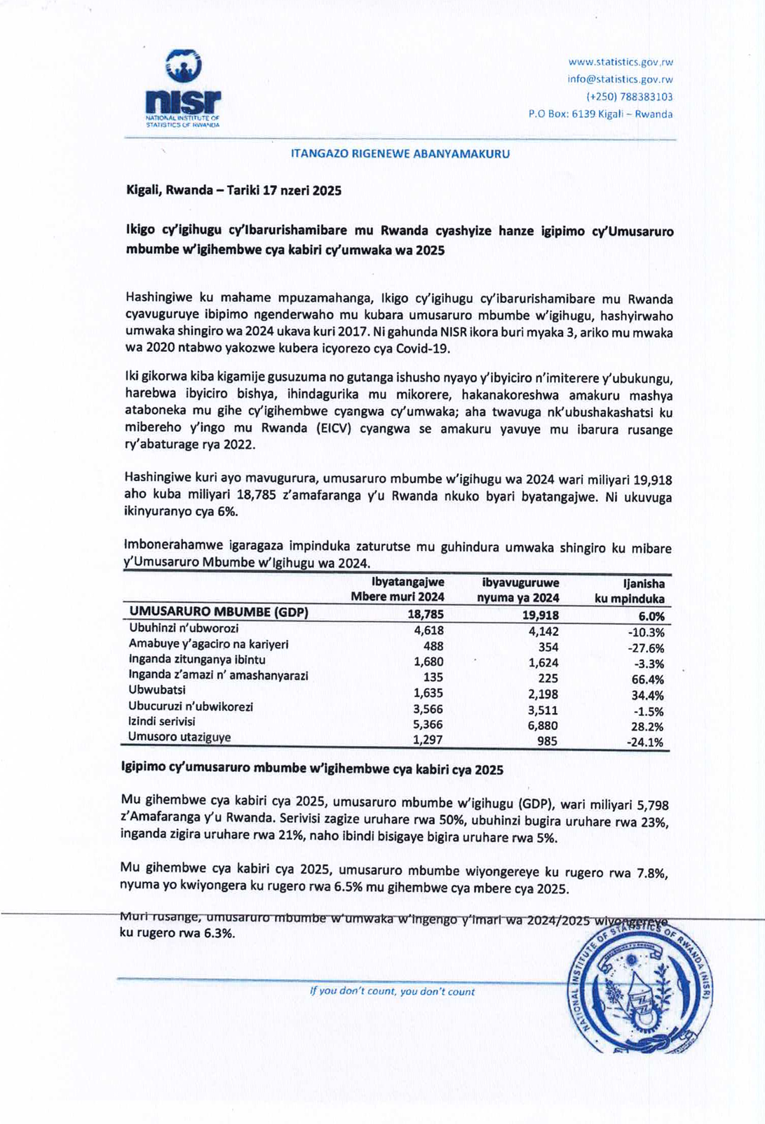 6 October, 2025 ITANGAZO RIGENEWE ABANYAMAKURU: UMUSARURO MBUMBE W'IGIHUGU- IGIHEMBWE CYA KABIRI 2025 Attachment Size UMUSARURO MBUMBE W'IGIHUGU- IGIHEMBWE CYA KABIRI 2025 (433.46 KB) 433.46 KB