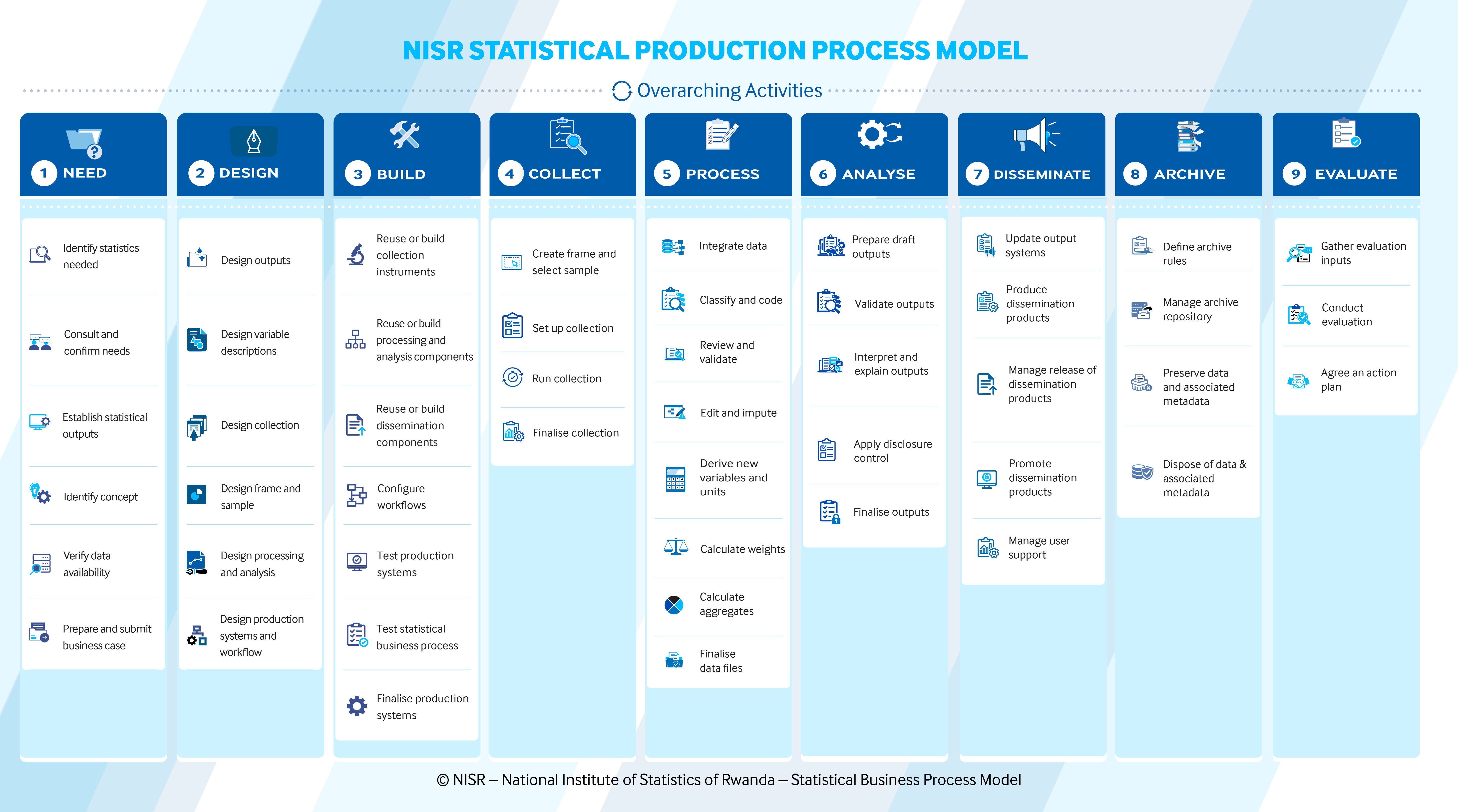 The National Institute of Statistics of Rwanda (NISR) has adopted the Generic Statistical Business Process Model (GSBPM) as its official statistical production process model to strengthen the quality, consistency, and modernization of official statistics.